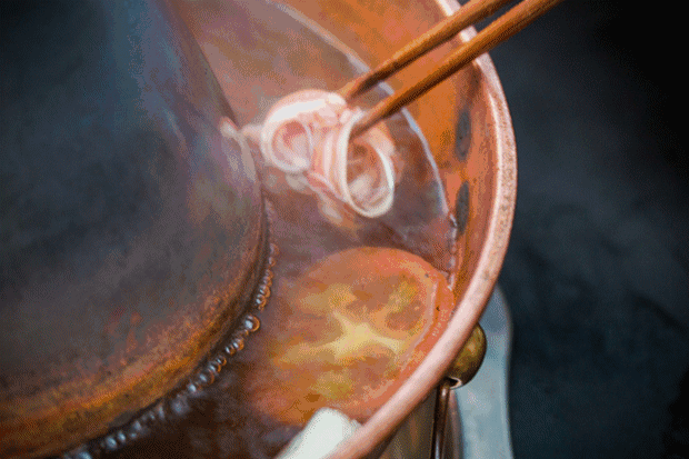 北京的銅鍋涮羊肉和重慶牛油火鍋形成鮮明對比,可以說是南北派火鍋的各自經典代表。在北京下雪的冬天,鉆在屋里,夾起一片手切鮮羊肉,在炭燒的清水銅鍋里,那么來回涮幾下,蘸著放有小蔥和香菜的芝麻醬,再就幾口糖蒜,實在是人間美味。