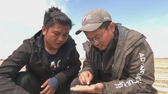 棉農正在查看棉花的播種情況。申凱龍攝