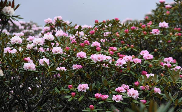 6月,來到位于云南省迪慶州香格里拉市東旺鄉勝利村的雪山之巔,就會看到漫山的高山杜鵑花開成海,那些白的、紅的、粉的高山杜鵑在山野里次第開放,為廣袤的山梁披上一件件彩色外衣,蔚為壯觀。