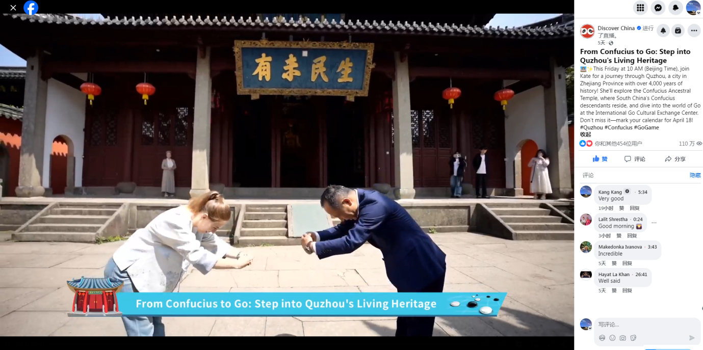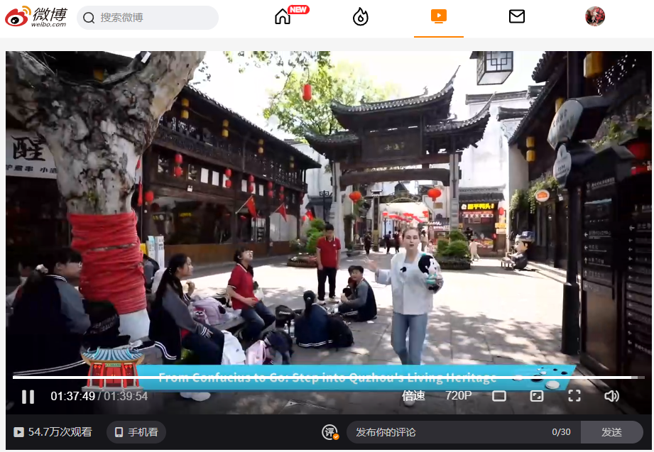 本次英文直播在Facebook平臺“探索中國”(Discover China)賬號及中國網官方新浪微博賬號同步播出。直播播出72小時內,得到了廣泛海內外網友的關注,Discover China賬號播放量超120萬,中國網新浪微博官方賬號閱讀量104萬,播放量54.7萬,為進一步提升衢州的區域特色和國際知名度,帶動衢州文化和旅游產業的快速發展貢獻了力量。